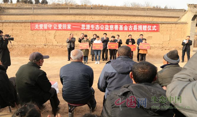 農歷2018年春節前夕,中華思源工程扶貧基金會生態公益慈善基金在古縣開展以“關愛留守 讓愛回家”捐贈活動,為困難群眾帶來了春節前的問候與關懷。2月9日,由中華思源工程扶貧基金會生態公益慈善基金發起,古縣縣委、縣政府協辦,石壁鄉黨委、政府主辦的“關愛留守讓愛回家”思源生態公益慈善基金古縣捐贈儀式在石壁鄉高城村舉行??h委副書記常立智,縣委常委、宣傳部部長吳曉芳,中華思源工程扶貧基金會生態公益慈善基金辦公室主任甕清泉,以及縣民政局局長李濱峰、扶貧局局長張玉敏、教科局局長吳俊君、石壁鄉黨委書記李永剛出席了捐贈儀式。常立智、甕清泉、李永剛分別在捐贈儀式上作了發言。10位受到捐贈的老人和學生代表現場接受捐贈。
