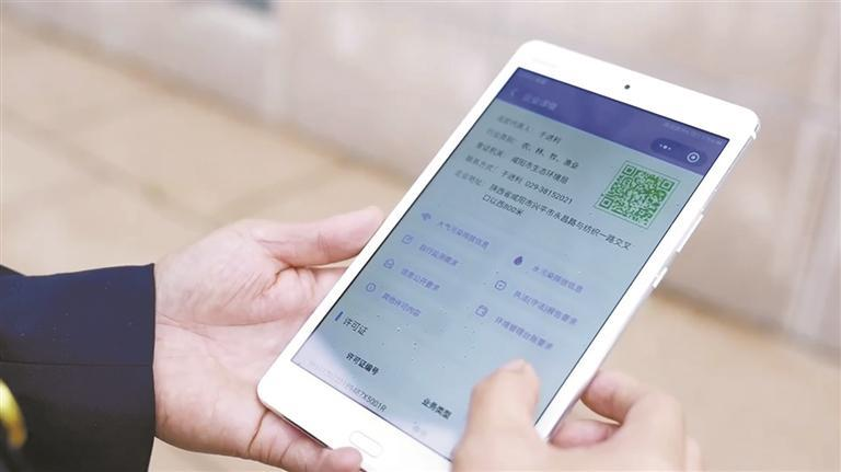 咸陽市高新區執法人員使用“智慧碼”平臺查看相關信息。咸陽市生態環境局 供圖