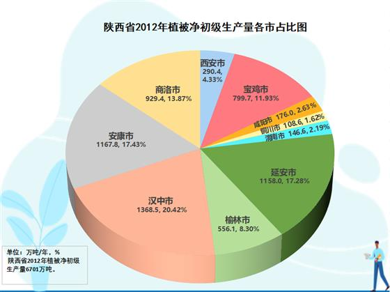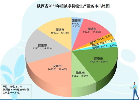 2022年分市生態空間元生產力水平分析結果表明,有關中水龍頭之稱的寶雞市,成為全省生態產品第一“高產市”,即單位面積生態產能全省最高的市,全市平均453.2公斤/畝;漢中其次,435.2公斤/畝;安康第三,419.9公斤/畝;商洛第四,405.7公斤/畝。其后,依次分別是西安363.0公斤/畝、咸陽349.0公斤/畝、銅川340.7公斤/畝、延安300.9公斤/畝、渭南293.1公斤/畝、榆林154.7公斤/畝。榆林市生態空間畝產水平約為寶雞市的三分之一。
