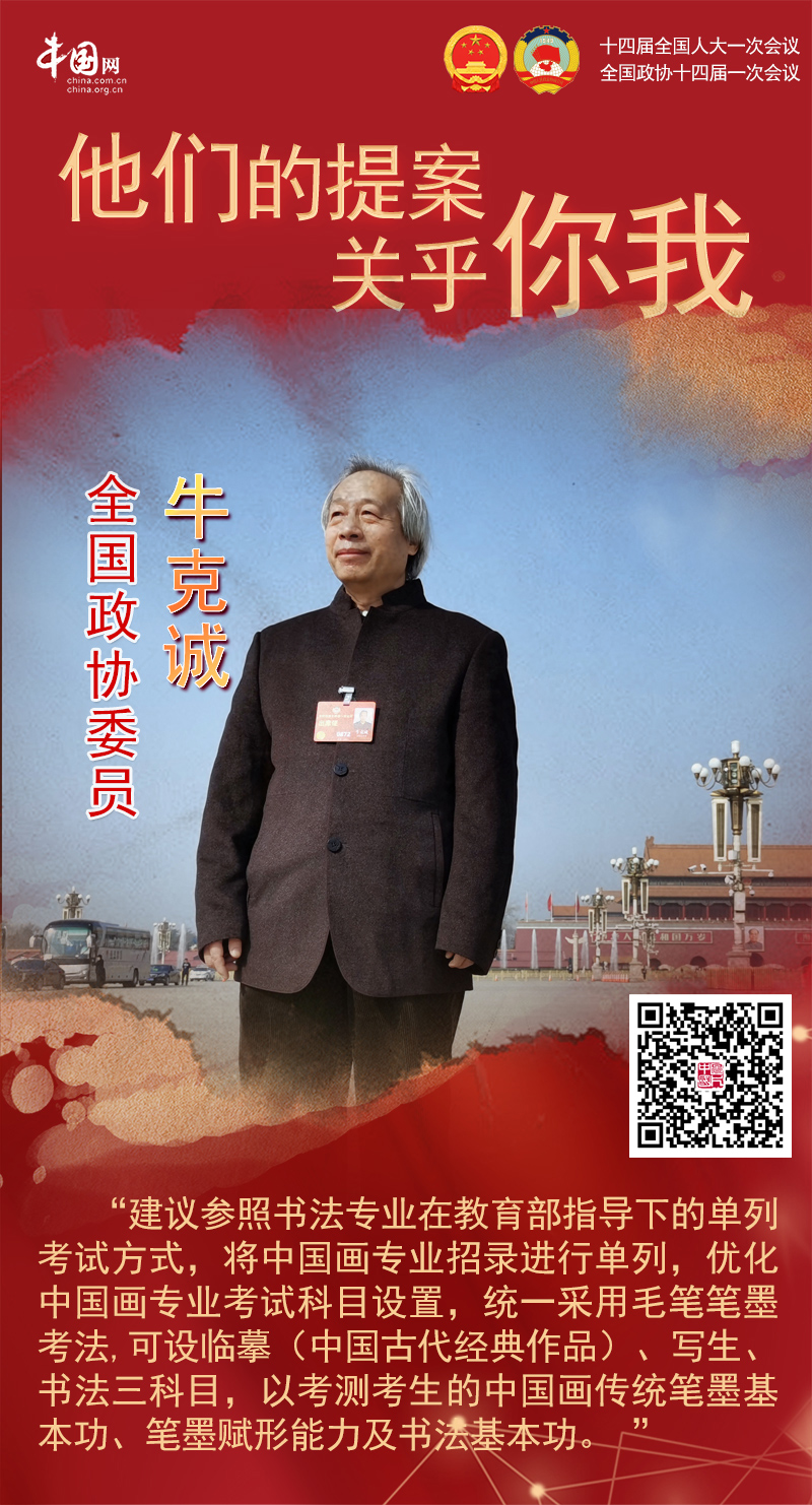 ??苏\委員建議:參照書法專業在教育部指導下的單列考試方式,將中國畫專業招錄進行單列,優化中國畫專業考試科目設置,統一采用毛筆筆墨考法,可設臨?。ㄖ袊糯浀渥髌罚?、寫生、書法三科目,以考測考生的中國畫傳統筆墨基本功、筆墨賦形能力及書法基本功。