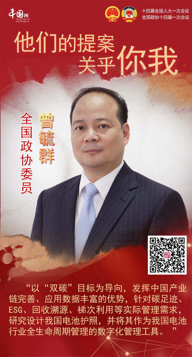 曾毓群委員建議以“雙碳”目標為導向,發揮中國產業鏈完善、應用數據豐富的優勢,針對碳足跡、ESG、回收溯源、梯次利用等實際管理需求,研究設計我國電池護照,并將其作為我國電池行業全生命周期管理的數字化管理工具。