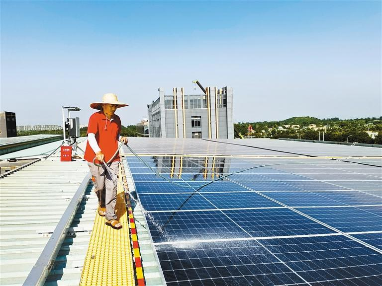走進凝遠新材的廠區,廠房屋頂上一塊塊深藍色太陽能電池板整齊排列,在陽光照射下熠熠生輝,源源不斷地將太陽能轉化成為清潔電能。