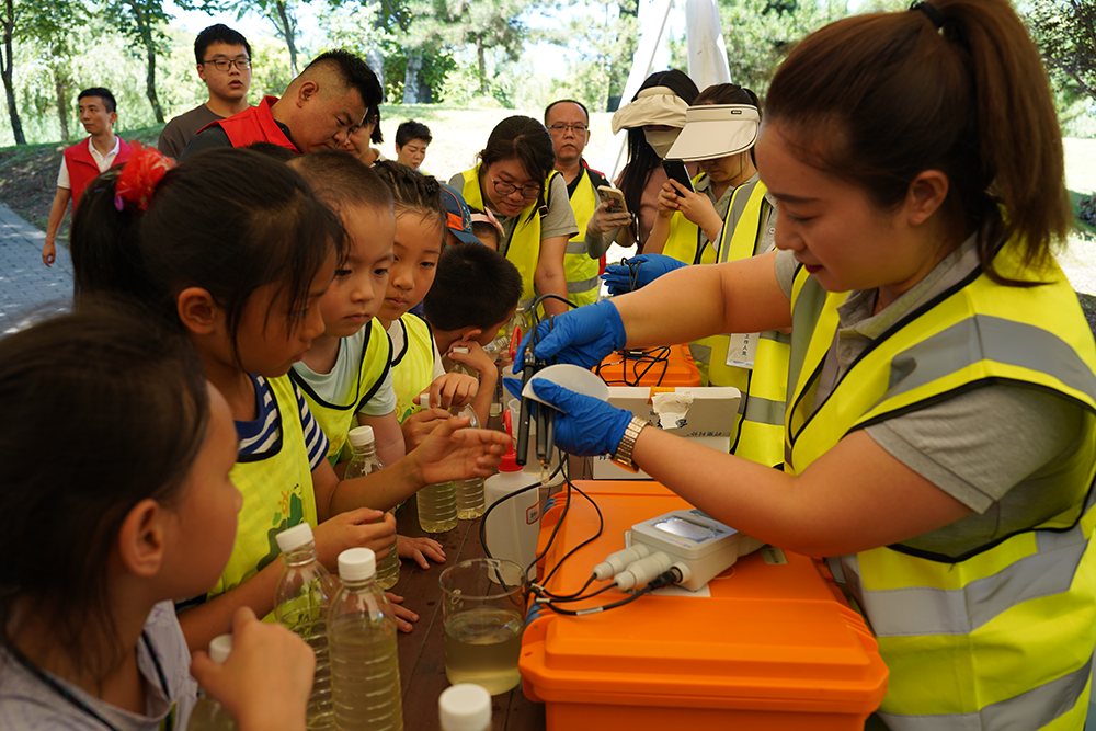 “地表水質量的好壞,受PH值、電導率、溶解氧的綜合數值影響……”來自交控環境公司的水質檢測科普員為參與活動的志愿者們耐心講解相關知識,并演示取水、檢測相關流程。小朋友們紛紛在家長和志愿者的協助下排隊取水,并興致勃勃地觀看水質檢測的操作過程。