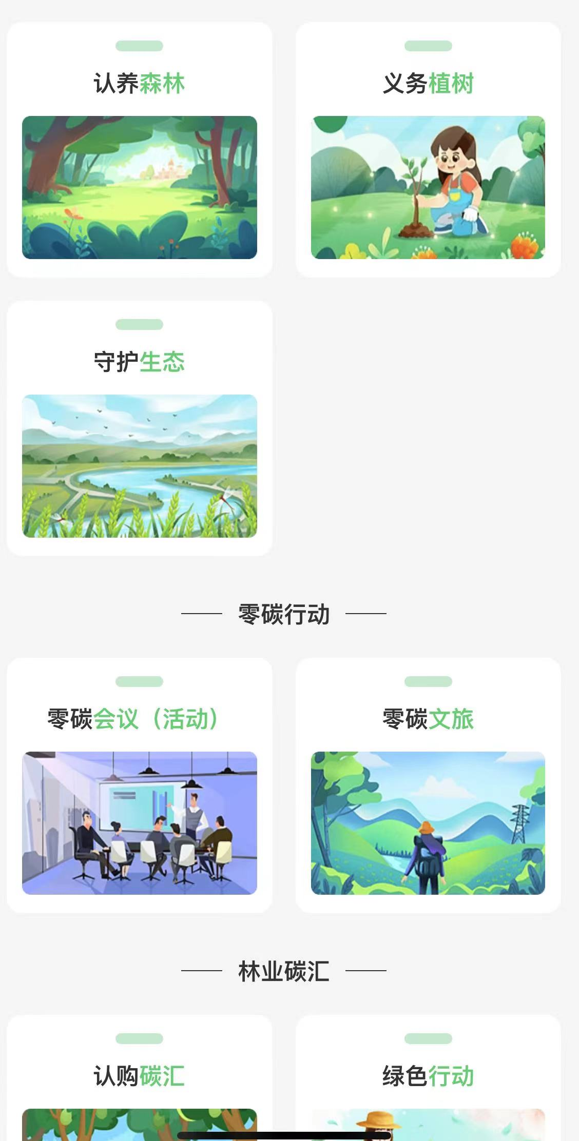 由咸陽市林業局建設的“秦碳原”咸陽林業碳普惠平臺,以區塊鏈技術為依托,開發了生態固碳、綠色未來、低碳辦公、認購碳匯等功能模塊。市民可通過“秦碳原”微信小程序,登錄個人低碳生活平臺,通過認養森林、義務植樹、公益活動等行為獲取碳匯量獎勵;通過愛心捐贈助力生態環境保護;通過購買經過認證的等量碳匯進行抵扣,實現個人和群體的零碳文旅;通過低碳出行、打卡,答題、助力分享等方式獲得積分,并在碳惠商城兌換門票、電子卡券、實物商品等。
