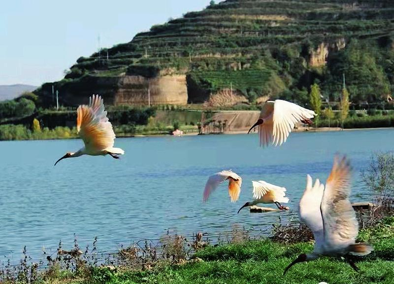 陜西寶雞千湖生態旅游景區:朱鹮飛舞引客來