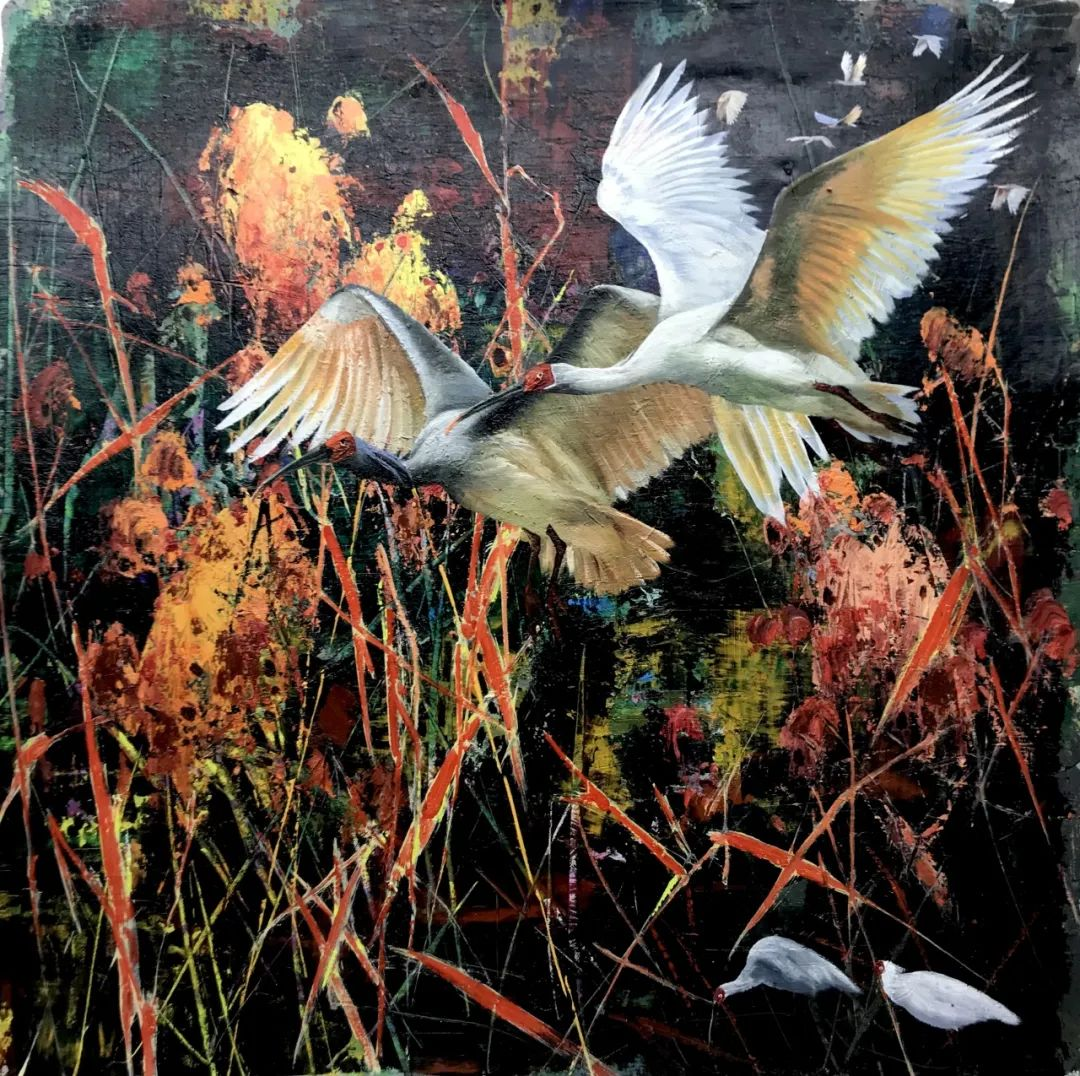 “鹮回故里——晏子油畫”展演繹了“世界拯救瀕危物種的成功典范”的中國案例,從“發現”到“保護”,從“繁衍”到“復興”,中華朱鹮從秦嶺起飛,飛向世界,在高空起舞鳴唱,講述了人與自然和諧共生的生態傳奇。