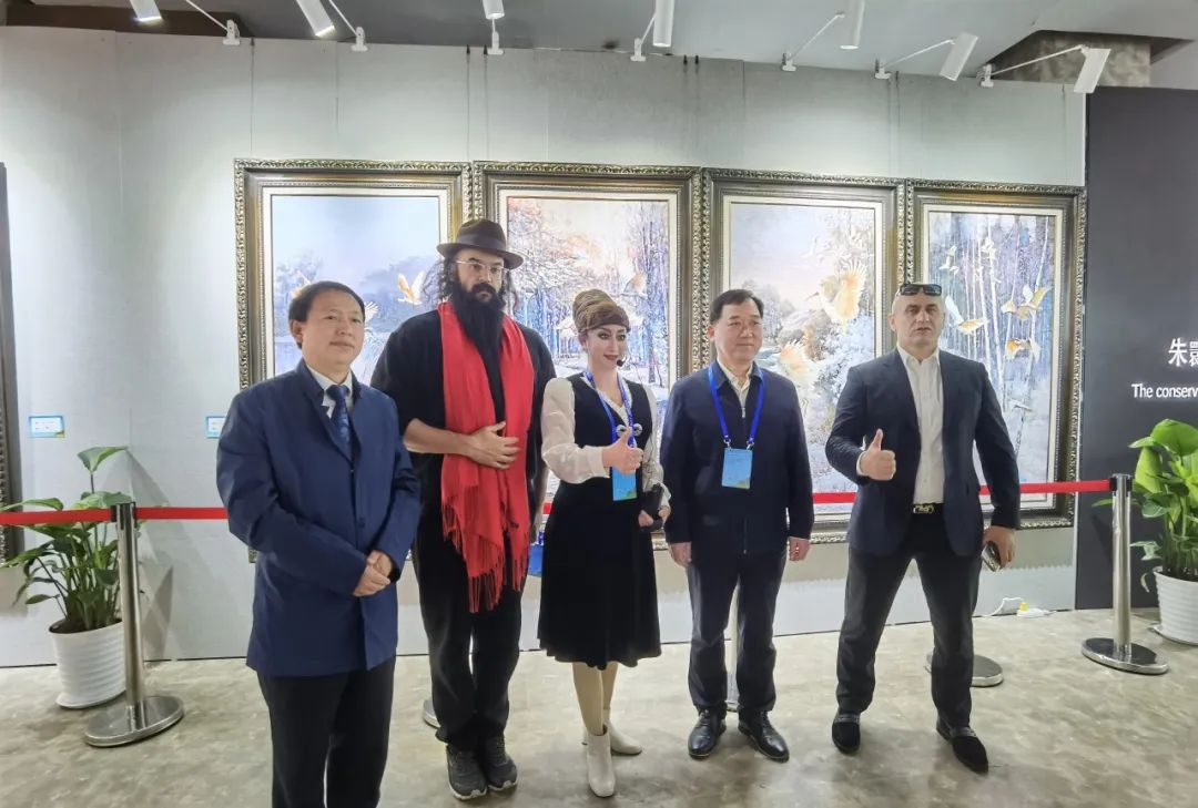 晏子油畫家與參加“生態漢中·鹮美天下”2023朱鹮文化交流活動的國際友人在一起