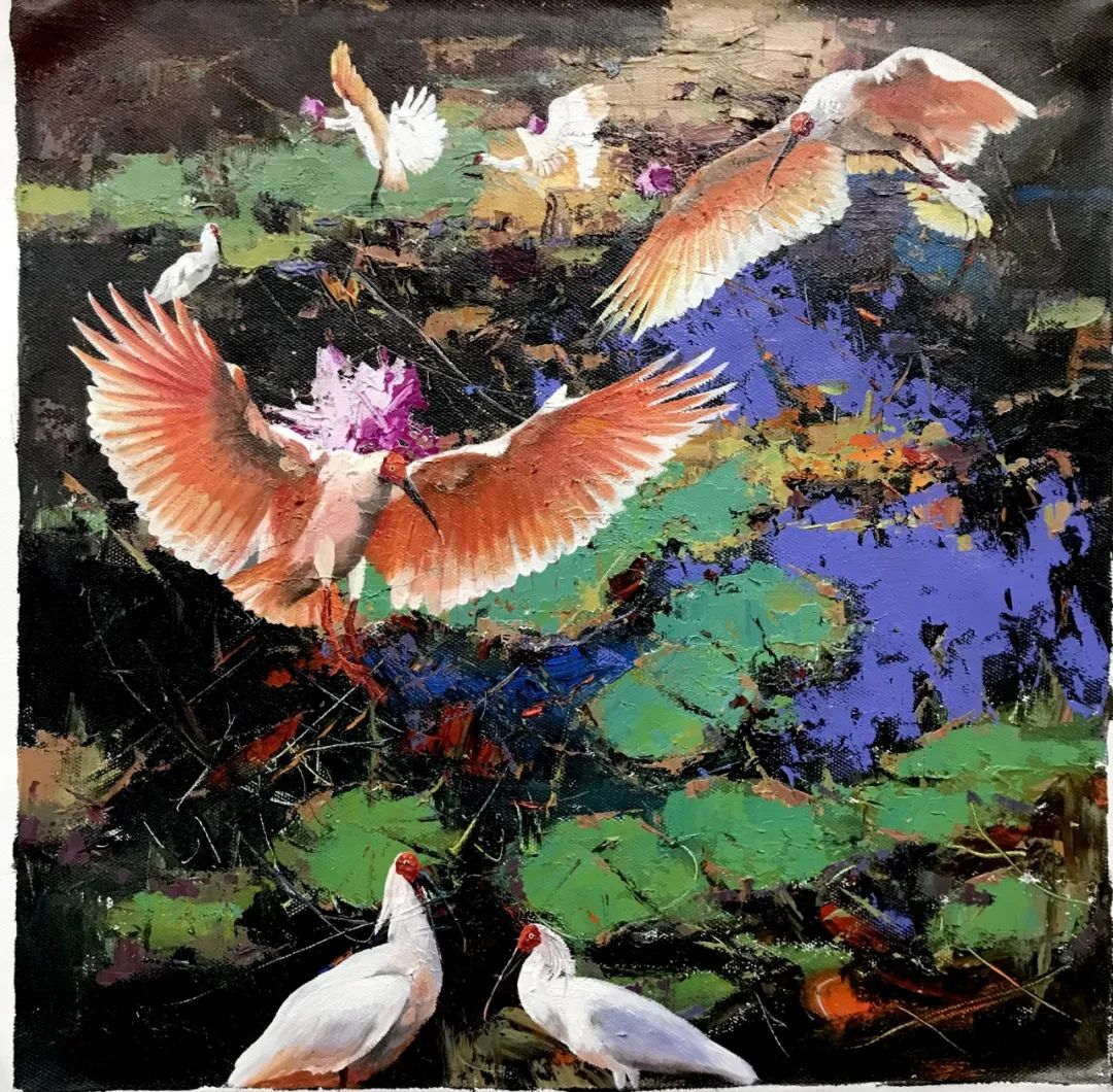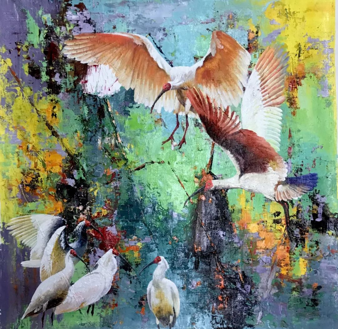 “鹮回故里——晏子油畫”展共展出50多幅精彩作品,以美輪美奐的色彩、斑駁交錯的光影,將“人與自然和諧共生”之景印入一幅幅畫作之中,盡情詮釋朱鹮之美、自然之善?!棒骠嫫鹞栀庵禧q、來泠春塘棲綠樹”,希望每一位觀者受到感染、受到沖擊、受到啟示,將“尊重自然、順應自然、保護自然”的意識變成人們的自覺的行動踐行實踐。