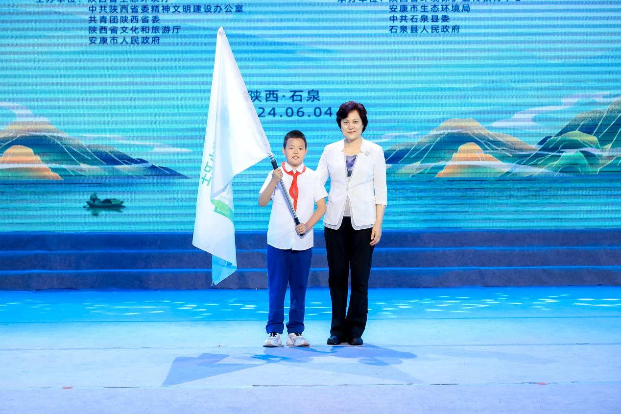 6月4日上午,陜西省2024年六五環境日省級主場宣傳活動啟動儀式在陜西省安康市石泉縣舉行。陜西省人大常委會環境與資源保護工作委員會主任龔曉燕出席啟動儀式,為“秦嶺生態小衛士小記者團”授旗,并宣布2024年六五環境日陜西主場宣傳活動啟動。