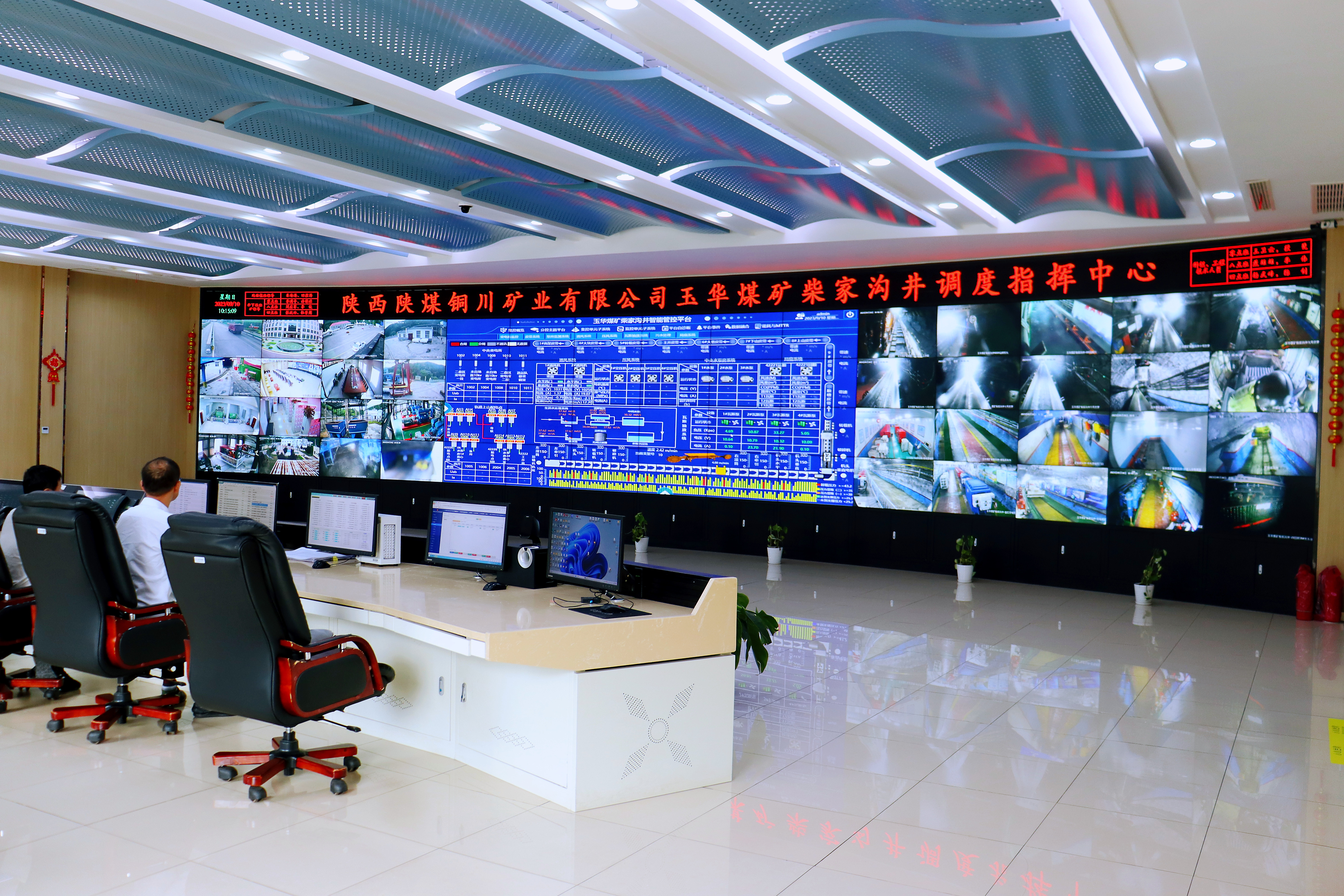 走進柴家溝井調度指揮中心,巨大的電子屏實時顯示著采煤場景,實時顯示著人員定位、視頻監控、通訊聯絡等安全生產系統數據,智能工作面更可感、可見、可知、可控。