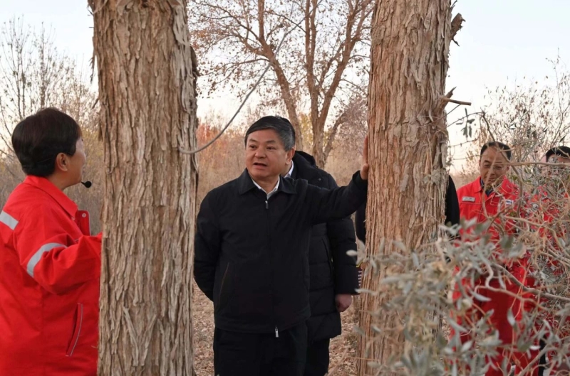 河西走廊—塔克拉瑪干沙漠邊緣阻擊戰,是習近平總書記親自部署的“三北”工程三大標志性戰役之一。黃潤秋來到兵團第二師鐵門關市融媒體中心,聽取新疆河西走廊—塔克拉瑪干沙漠邊緣阻擊戰推進情況介紹,了解防沙治沙阻斷沙漠合攏情況。他指出,要深入學習貫徹習近平生態文明思想和習近平總書記重要指示要求,扎實推進阻擊戰重點工作,全面提升生態系統質量和穩定性,筑牢我國北方生態安全屏障。黃潤秋還來到位于巴州輪臺縣的塔中沙漠植物園、塔里木沙漠公路零碳示范工程進行調研,對相關單位在沙漠腹地建設引種基地、在公路建設的同時開展防沙治沙研究、大力發展光伏產業等做法表示肯定,并鼓勵他們加強科研與工程結合,促進國際交流合作,開發出更多本土化耐寒旱、耐鹽堿種質資源,建立“喬、灌、草”相結合的立體生態體系,不斷提高沙漠地區植物、動物多樣性,助力全球荒漠化治理。