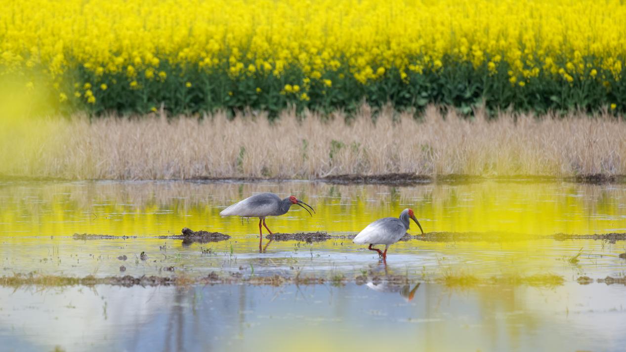 油菜花與朱鹮 湯勇/攝