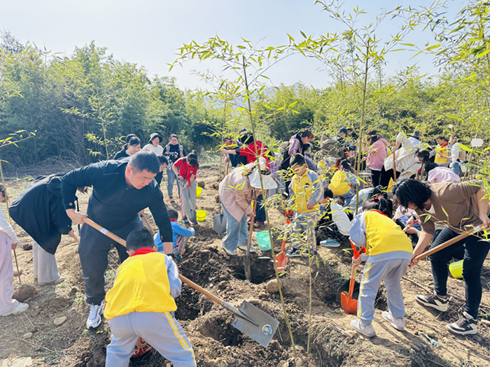 “難得周末有空,陪孩子加入到‘我為大熊貓種棵竹’活動中來,既增加了孩子的戶外興趣,也培養了他的生態保護意識?!蔽囱肼沸W學生家長說。