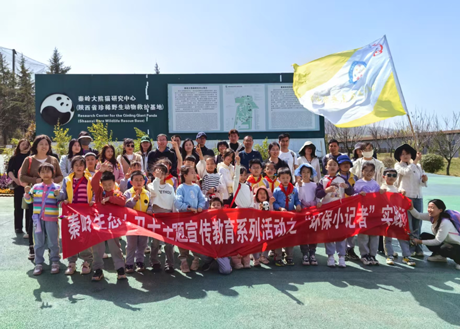種植任務完成后,環保小記者團前往秦嶺四寶科學公園參觀?!按笮茇埵终朴辛??”“它們的黑眼圈其實是‘防曬霜’!”科普競答環節,主持人拋出的熊貓冷知識點燃全場熱情。在這里,大家不僅了解到大熊貓的飲食習慣、繁殖特點以及科研人員為保護大熊貓所做出的努力,還觀察了其他可愛的珍稀動物,看到它們的生活環境和飼養過程,深刻感受到這些珍稀動物的珍貴與脆弱,對珍稀動物的保護工作有了更直觀的認識。