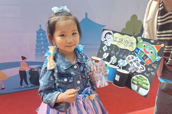 活動現場,小朋友們在爸爸媽媽的帶領下,分別向居民朋友們展示自己的二手舊物改造成果。有塑料瓶改造的小花籃,有塑料杯改造的筆筒,也有其他五顏六色各式各樣的手工擺件。在環保時裝秀環節,小朋友們穿著由各類塑料制品改造的新衣服,大方登臺,自信展示,引來居民朋友們的鼓掌歡呼。不論是舊物改造還是環保時裝秀,小朋友們都將“重復利用”的原則貫穿環保實踐,居民朋友們紛紛表示,“孩子們太棒了,這就是我們觸手可及的資源再利用”。
