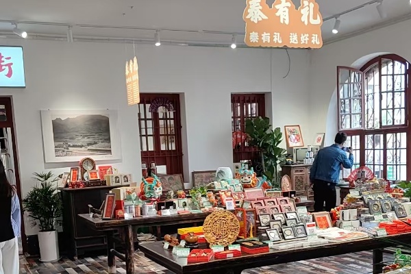 在清真寺社區,“花開齊魯石榴紅,泰山和合一家親”展館內,圖片資料、文字說明和實物展出相結合,生動展示了在中國共產黨領導下清真寺街舊貌換新顏的發展歷程。紅石榴文創中心內,泰山玉、泰山皮影、桃木工藝品等文創精品琳瑯滿目,游客、市民可在此參與手工創作,親手制作文創紀念品。借助“非遺+創新”模式,這里實現了文化保護與經濟發展雙贏,還推動了文化對外傳播。
