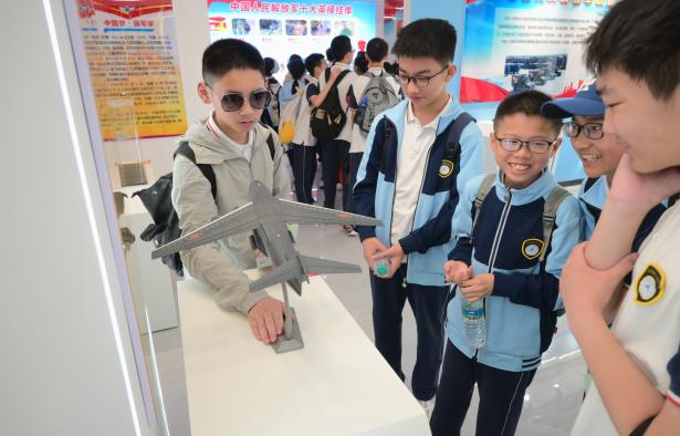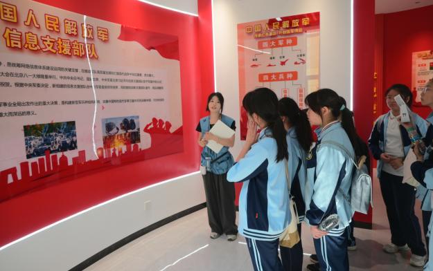 在國防教育展廳內,導彈模型、航天裝備等展品陳列有序,同學們屏息駐足,認真聆聽講解員講述我國國防建設從篳路藍縷到世界前列的偉大跨越。當看到“兩彈一星”元勛們在物資匱乏、技術封鎖的困境中,憑借堅定信念與卓越智慧成功研制核彈與衛星的珍貴影像時,不少同學紅了眼眶。這些英雄事跡如明燈照亮心靈,讓大家深刻意識到,作為新時代少年,肩負著科技強國、守護和平的重任,更應刻苦鉆研科學知識,在學習中發揚拼搏精神。