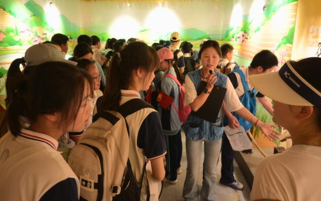 踏入農耕文化展館,仿佛穿越時空長廊。銹跡斑駁的古老犁耙、精巧復雜的龍骨水車、栩栩如生的傳統農耕場景復原,無聲訴說著先輩們改造自然、創造美好生活的智慧。同學們跟隨講解員的步伐,指尖輕輕撫過陳列的農具,聆聽著春種秋收、引水灌溉的古老故事。那些塵封的歲月,在一件件展品的講述中變得鮮活,讓勞動最光榮、勞動最崇高的理念深深扎根于少年心間。