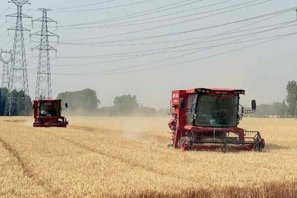 6月7日,在山東省泰安市岱岳區滿莊鎮灘清灣村看到,聯合收割機馬力全開馳騁在麥場,小麥收割、麥穗脫粒、麥渣還田一氣呵成,金黃的麥粒源源不斷地被輸送到運輸車上,一幅繁忙而喜悅的豐收畫卷正在金色麥浪中徐徐鋪陳。