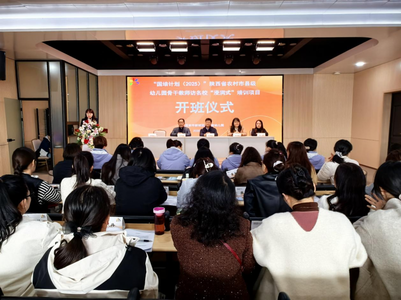 近日,由陜西省教育廳主辦、西安市新城區大明宮幼兒園承辦的陜西省2025年“國培計劃”--農村市縣級幼兒園骨干教師訪名?!敖櫴健迸嘤栱椖块_班儀式在幼兒園多功能廳舉行。此次研修聚焦幼兒園園本課程建構與實施,旨在通過系統的理論指導與實踐賦能,幫助幼兒園骨干教師提升園本課程建構力、實施力與評價力,以適配新時代學前教育“幼有優育”發展要求,為陜西省學前教育普及普惠、安全優質發展注入新動能。
