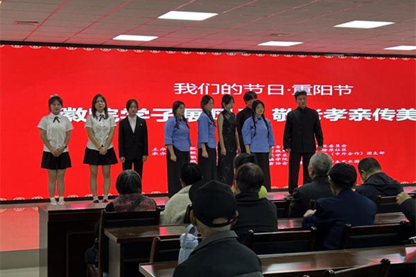 青春獻禮:多元節目詮釋敬老初心。演出在詩歌朗誦《重陽暖,代代情》中拉開帷幕,信息工程學院學生會的大學生們以深情語調誦讀經典詩詞,傳遞對長輩的感恩與牽掛,舞蹈《愛的主打歌》則以輕盈舞姿展現青春活力。話劇《破曉》成為全場亮點,大學生們通過情景再現,演繹跨越時空的對話,生動詮釋“一代又一代青年接續奮斗”的愛國主題。演出尾聲,一首《老男孩》將現場氣氛推向高潮。老年大學學員李奶奶感慨:“孩子們的表演讓我們感受到被惦記的溫暖,這個重陽節過得特別有意義!”