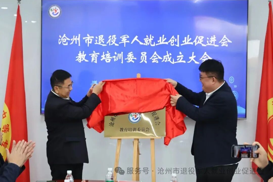 會議由滄州市退役軍人就業創業促進會會長崔徯升主持,常務副會長王成東、副會長張浩、王金明、王茹軍、周永強出席,教育培訓委員會全體成員齊聚一堂,共商退役軍人教育培訓與就業創業發展大計?;顒蝇F場,崔徯升會長與張浩副會長共同為教育培訓委員會揭牌,儀式簡潔而莊重,彰顯了對退役軍人服務工作的重視與期許。