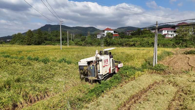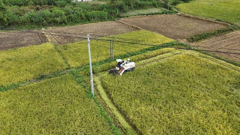 風攜稻香漫山崗,偏遠的小山村浸在清潤的秋意里。2025年10月,在江西省九江市德安縣鄒橋鄉楊坊村亭子李家的田壟間,收割機的轟鳴與秋風絮語交織,金屬履帶碾過松軟的田埂,卷起層層金浪,繪就出生動的豐收圖景。