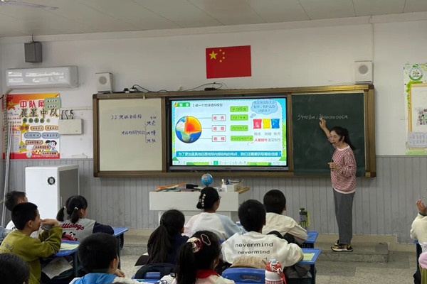 科學課堂于探究實踐中建構科學觀念??茖W組兩位老師的課堂,完美詮釋了科學教育的探究本質。陳雅玲老師執教的五年級《地球的結構》,教學邏輯清晰嚴謹。她從“火山噴發”這一震撼現象切入,引導學生猜測地球內部構造,再通過資料分析、記錄建模等實踐活動,讓學生在層層遞進中構建認知。時文瑾老師的《測量降水量》則是一節精準聚焦科學方法的實踐課。她引導學生從感官判斷過渡到精確測量,通過制作雨量器、模擬實驗、學習等級標準及戶外測量注意事項,完整經歷了“定義問題-設計工具-收集數據-得出結論”的科學探究全過程,并將知識拓展至暴雨預警等現實應用,有效培養了學生的科學思維與實踐能力。