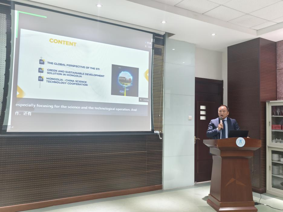 蒙古國經濟發展部國際合作司原司長 Battogtokh Dorjgotov(“一帶一路”國際科學家聯盟副主席、蒙古科學院大學理事會主席)發表《科學與技術創新的全球視野:中國 -蒙古科學技術合作》主題報告。他從國際合作視角出發,強調科技創新是破解生態難題、推動綠色可持續發展的核心動力,結合蒙古國生態環境現狀,提出針對性解決方案,并表達了深化中蒙在生態監測、綠色技術研發等領域合作的迫切期待。